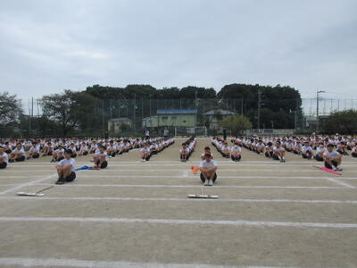 1年生、3年生は校庭でそれぞれ大繩やリレーの練習。