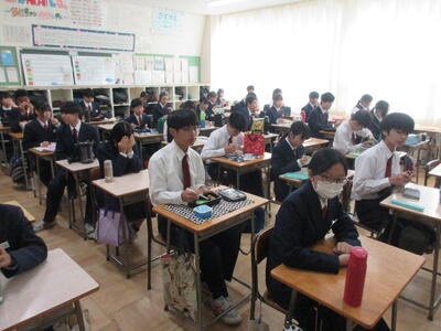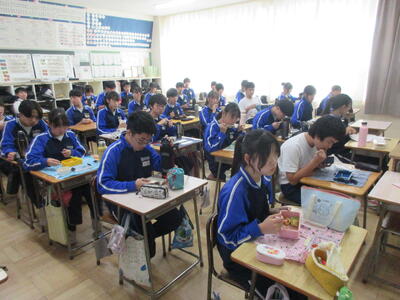 1,3年生が今日まで学年閉鎖でした、登校している2学年となないろ学級さんでは給食の配食がなかったので昼はお弁当でした。感染対策もあり、前向いての黙食でしたので普段ほど会話は弾まなかったかもしれませんが、どこかお弁当の時は生徒が楽しそうにしているのはいつの時代も同じなのでしょうか。
