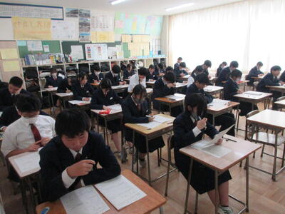3年生の教室では定期テストの個票を返却していました。さて、結果はどうだったのでしょうか。