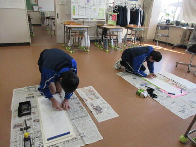 1年生は学期の反省をタブレットを用いて取り組んでいました。