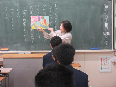 今朝は1年生が3学期の「読み聞かせ」でした。
