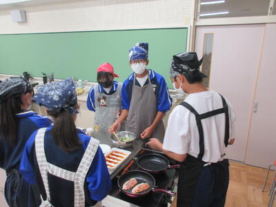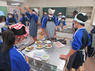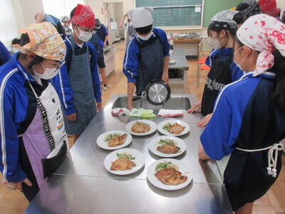 2年生家庭科「調理実習」豚の生姜焼き 投稿: 学校管理者 (16:01) カテゴリー: 今日の出来事 明日、延期した体育祭を午前中に実施します。 放課後準備でセクションが動いていましたが、良天を望むばかりです。 校内は2年生の調理実習が組まれていました。 午前中からいい匂いがするので調理室を覗くと、2年生が実習中でした。 どの班も、担任もおいしくいただけたようで何よりです。 0 -