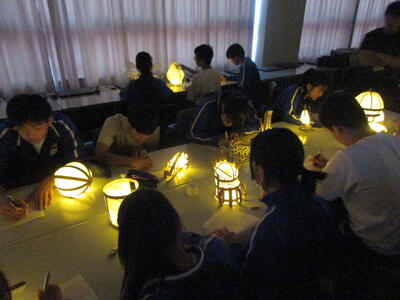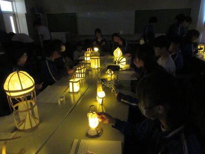 電気を消して授業がおこなわれていましたが、暗くなるとなぜかテンションも上がるわけですが、