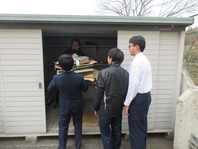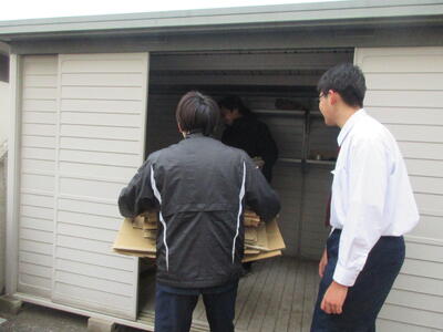 学年で進めてもらった1年生をはじめ、急な声掛けでしたが3年生からも参加してもらい倉庫から出して無事に業者に託すことができました。