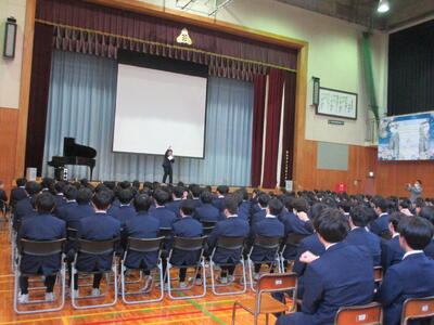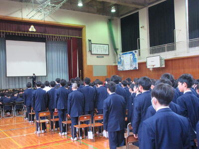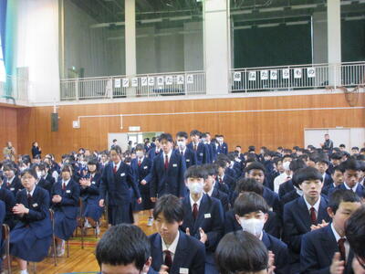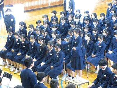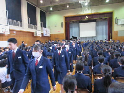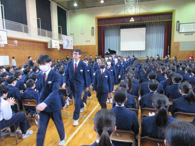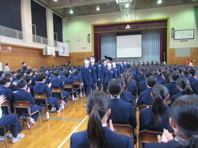 今日は朝一から「三年生を送る会」改め、「卒業イベント」で全校生徒で体育館に集まりました。