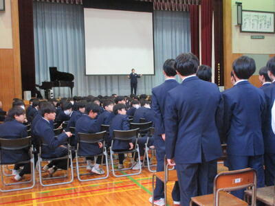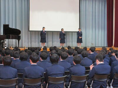 はじめに会長からの熱いメッセージから始まりました。長いセリフでしたが、ばっちり頭の中に入れて会長の思いが3年生に伝わったのではないでしょうか。